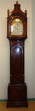 Staand horloge, gesigneerd J. Brice, London, Engeland, plm 1770, gaande werk en slagwerg. Mahonie houten, pagode-kast. Uurwerk en kast horen bij elkaar.
