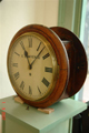 Stationsklok, gesigneerd E. Lawrence, Engeland, plm 1860. Gaand werk en dubbele wijzerplaat. Zeer bijzondere klok met erg goed gemaakt uurwerk en twee, tegenover elkaar liggende wijzerplaten. Relatief kleine klok.