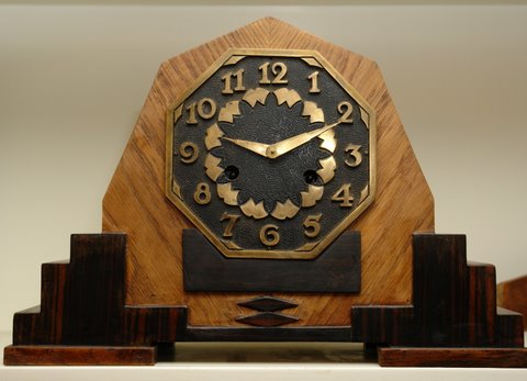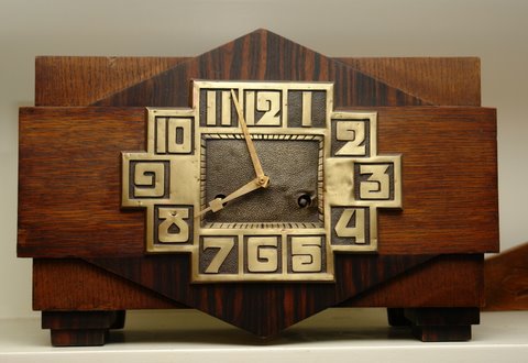 Amsterdamse School pendule, Nederlands, gaand- en slagwerk, plm. 1925