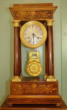 Kolompendule, Frans, gaand- en slagwerk, palissander ingelegd met notenhout, plm. 1820