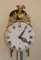 Comtoise met diepe schotel en belhek, gaand werk, slagwerk en wekker, Frankrijk, plm. 1760.