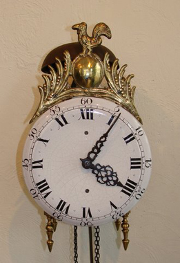 Comtoise schotelplaat en haantje, met alle kenmerken van vroege klok zoals slagwerk, Frankrijk, plm. 1890.